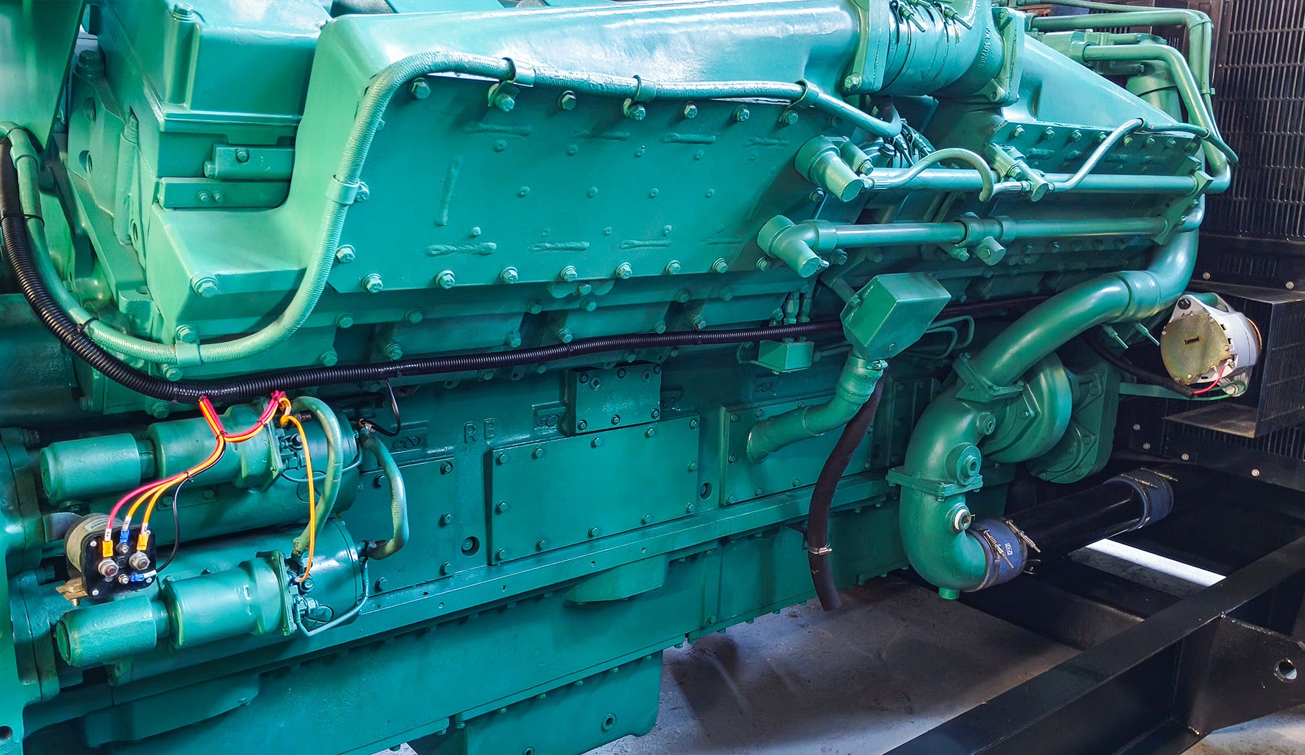 - Vibration isolators are between the engine/alternator and the base frame.