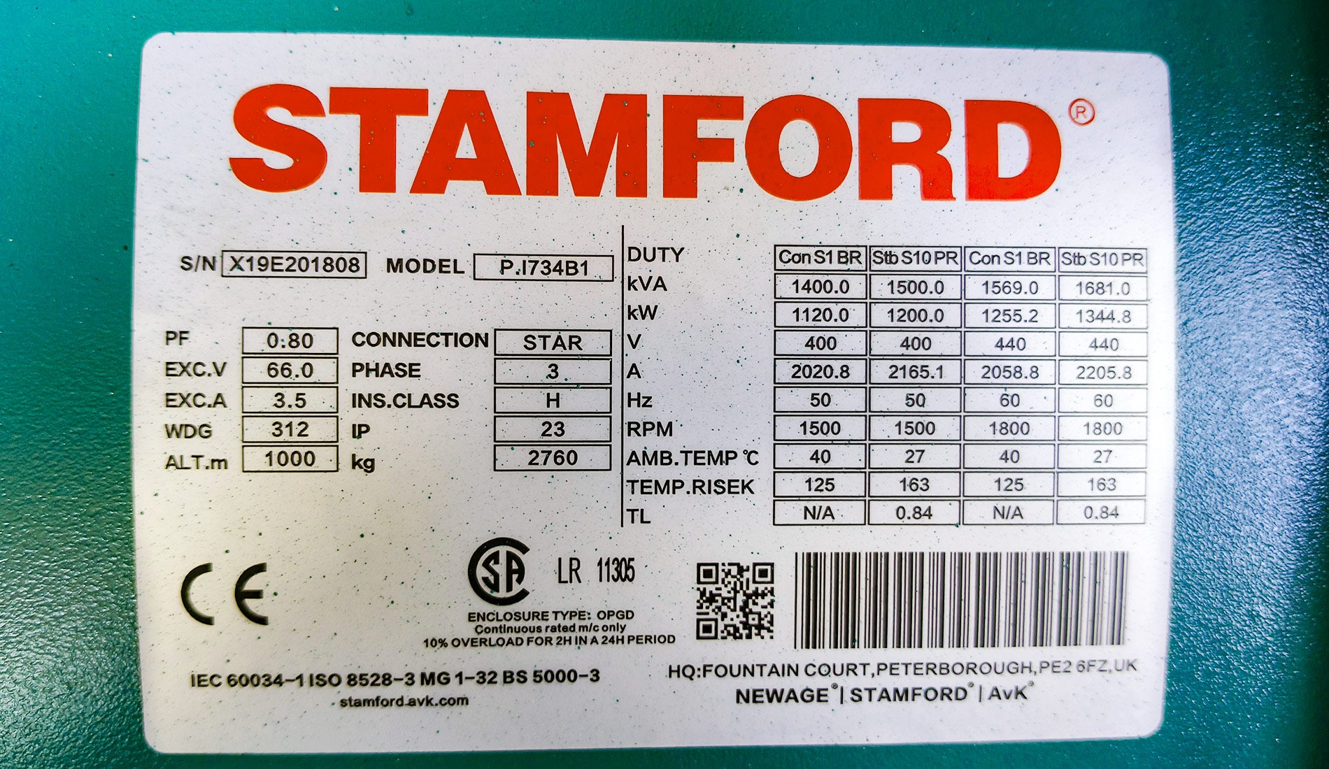 FDK Genset Model: CMS1375KVA-50Hz-R-2019-125