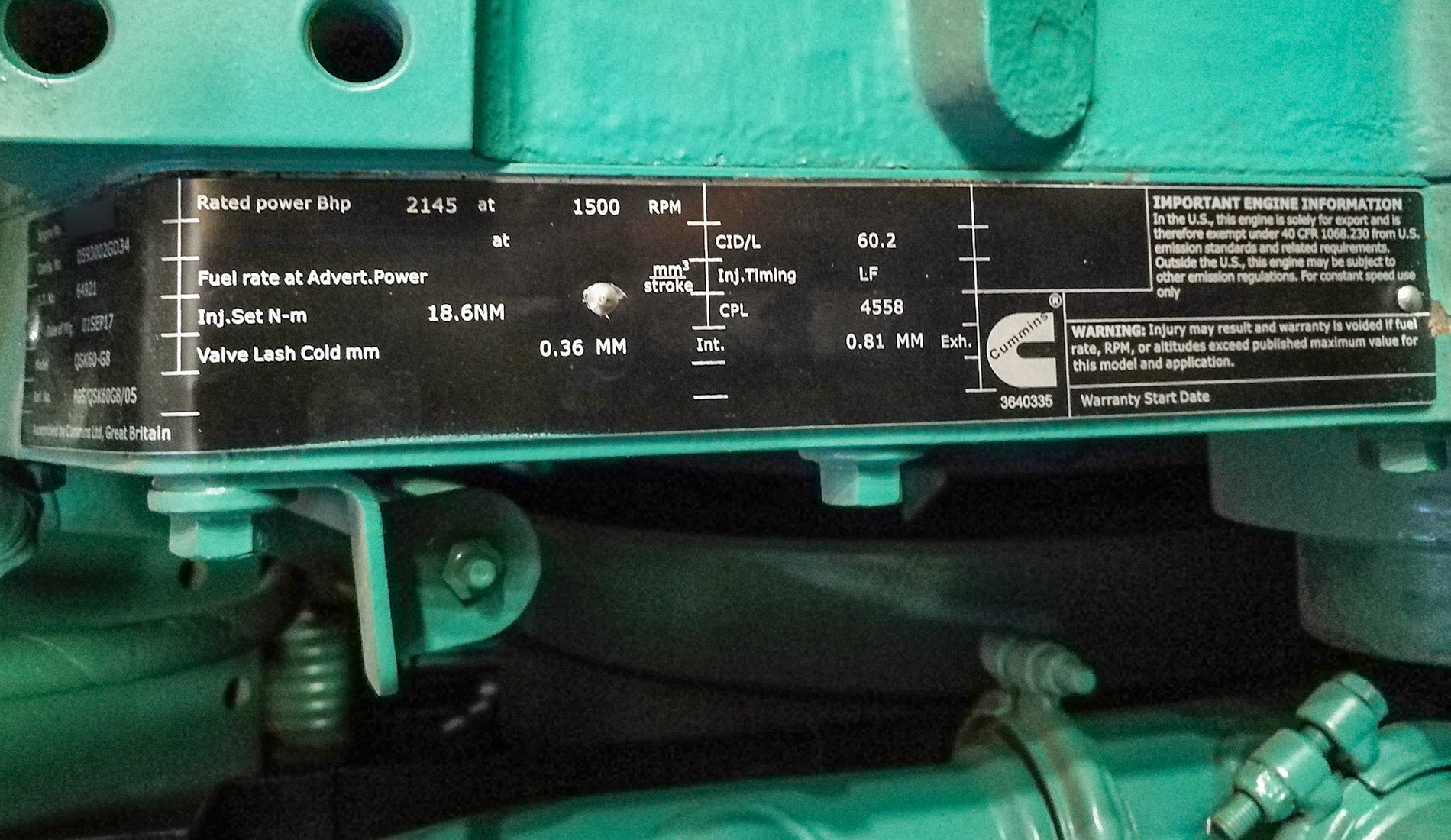 Engine Model: Cummins UK QSK60-G8